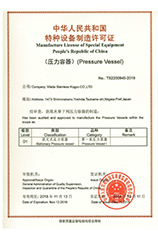 Any pressure containers to be exported to China is required to obtain the manufacture license to ensure the safety and assured quality of products.